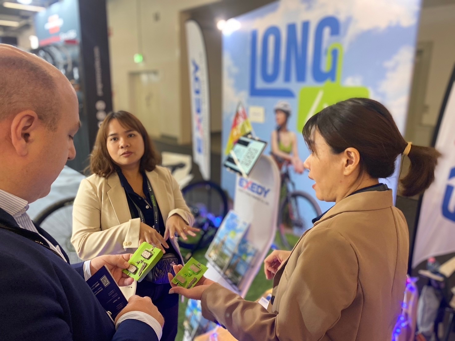 EXEDY Friction Material Co., Ltd. proudly showcased the EA1-RS bicycle brake pads, developed to balance performance, durability, and affordability. The product reflects our commitment to innovation and sustainability, offering high performance while minimizing environmental impact.