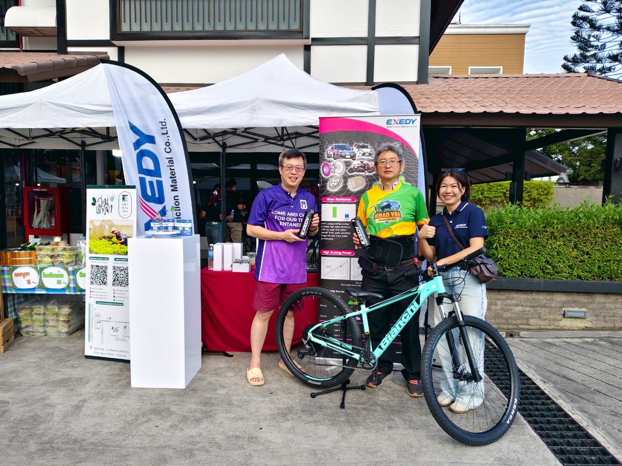 EXEDY Friction Material Co., Ltd. also participated in this event. We presented our new product, "bicycle brake pads," to attendees at the venue. On August 9, 2025, we held a presentation at booth A1 inside the building for people who came to pick up their BIB numbers on that day. We also participated in the event on August 10, 2025, with our booth located at B15.
